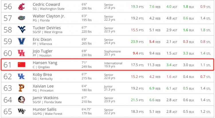 知名选秀网站更新2025年模拟选秀:杨瀚森上升7位 来到第61