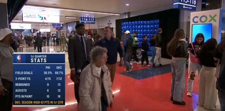 3月20日讯 NBA常规赛,雷霆首节42-26领先76人。