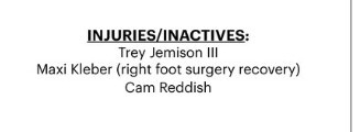 值得注意的是,除了受伤的克莱伯,雷迪什和双向合同球员杰米森没有进入激活名单。
