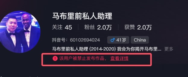自称马布里前助理抖音账号被禁言 昨天发布内容希望老马好好做人