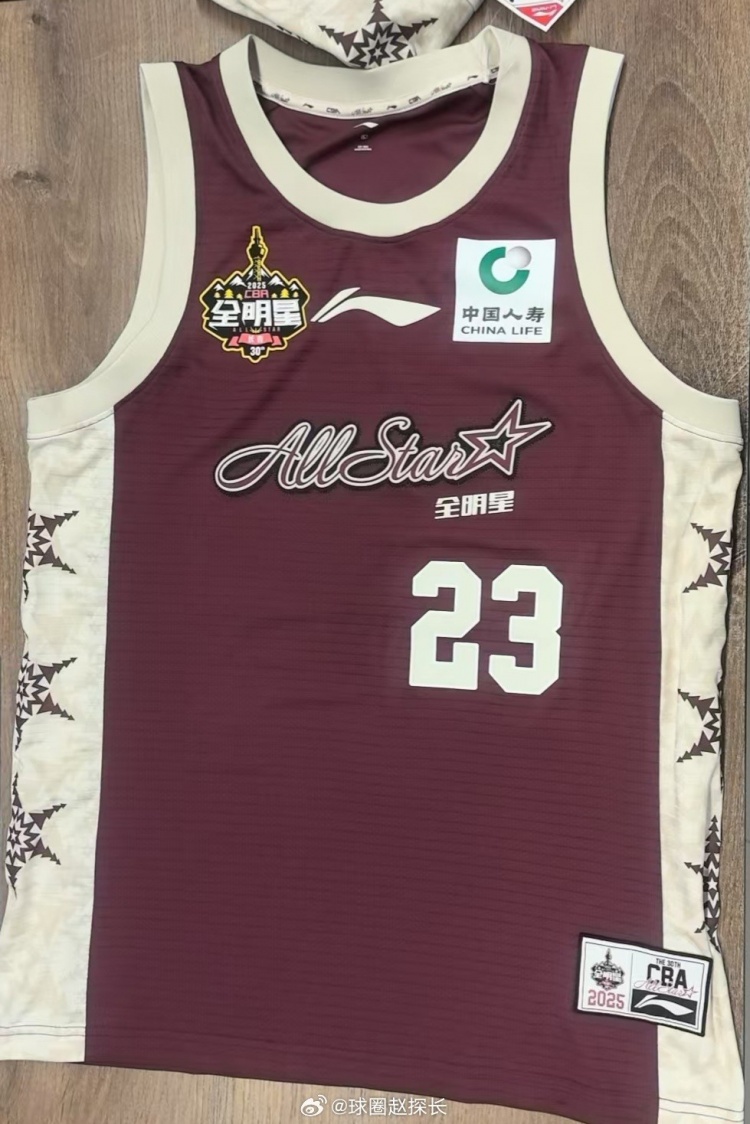 探长晒本赛季CBA全明星正赛球衣:酒红色为主 南区浅色&北区深色