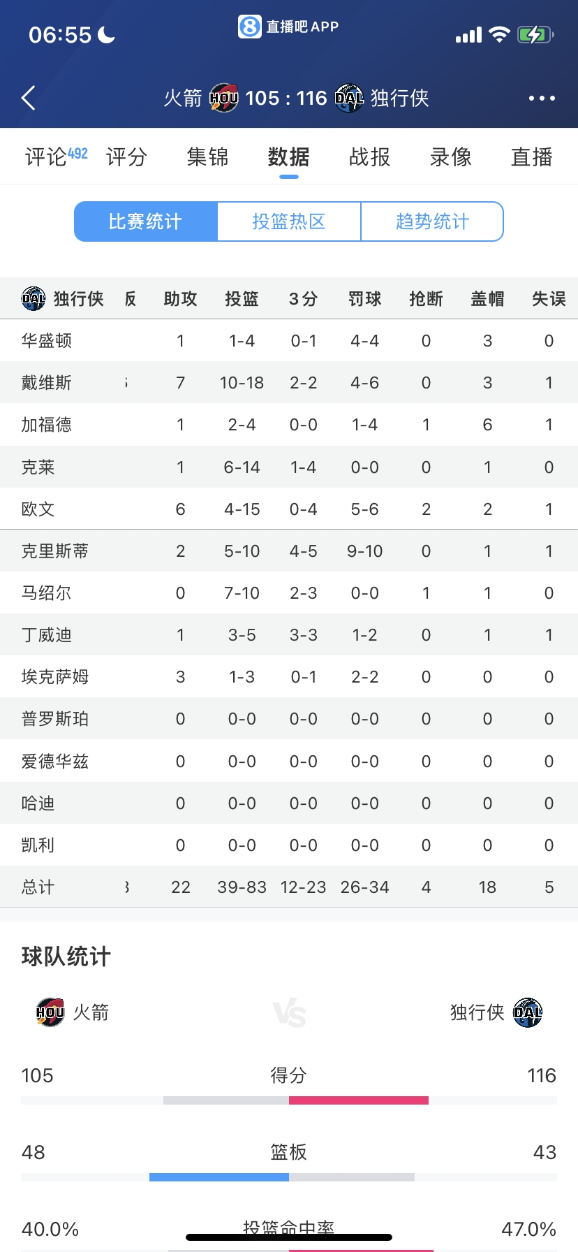 02月09日讯 NBA常规赛,独行侠在主场以116-105拿下火箭,送给对手6连败。
