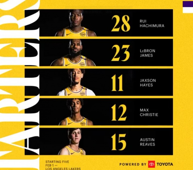 今日如何?里夫斯/克里斯蒂/詹姆斯/八村/海斯首发时 湖人3胜0负 2月2日讯 NBA常规赛,湖人将在客场挑战尼克斯。湖人首发:里夫斯、克里斯蒂、八村塁、詹姆斯、海斯。值得一提的是,本赛季湖人摆出这套首发还没输过,战绩为3胜0负。 2025/02/02