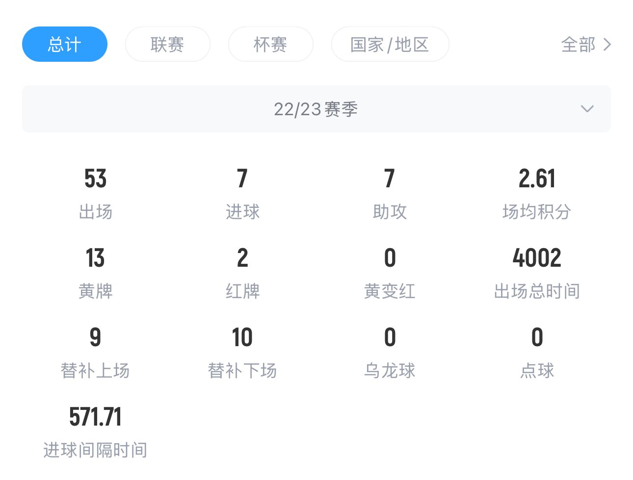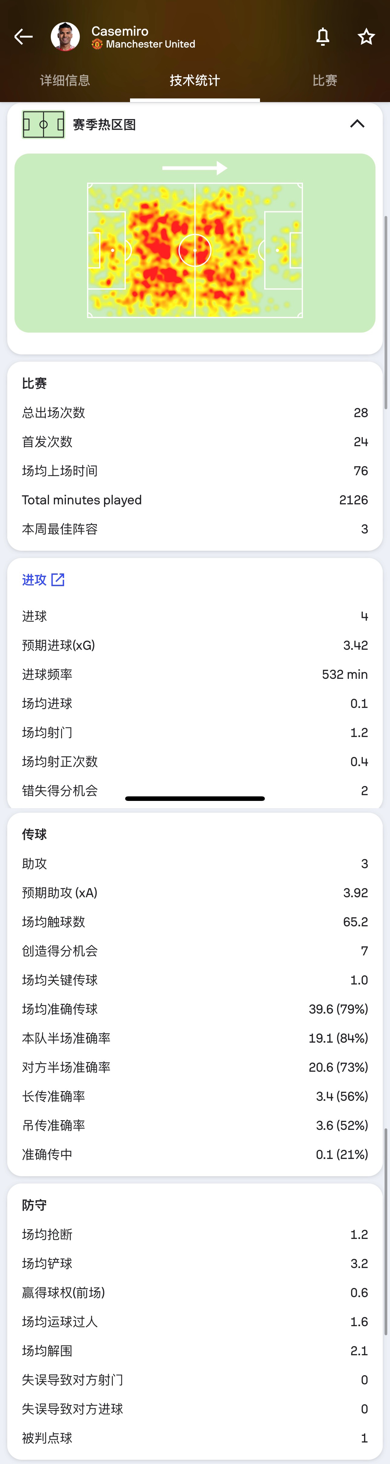 卡塞米罗22/23赛季英超数据↓