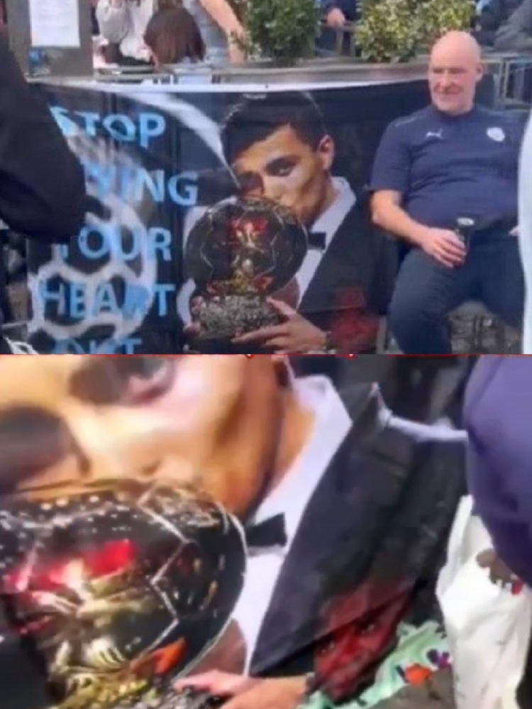 六台:曼城球迷带来了罗德里金球横幅,还加上了维尼修斯哭泣表情