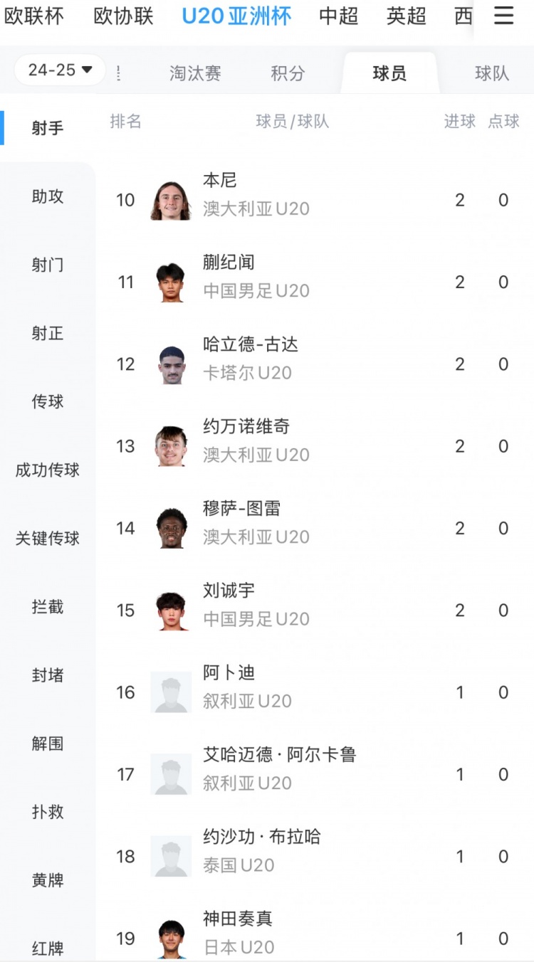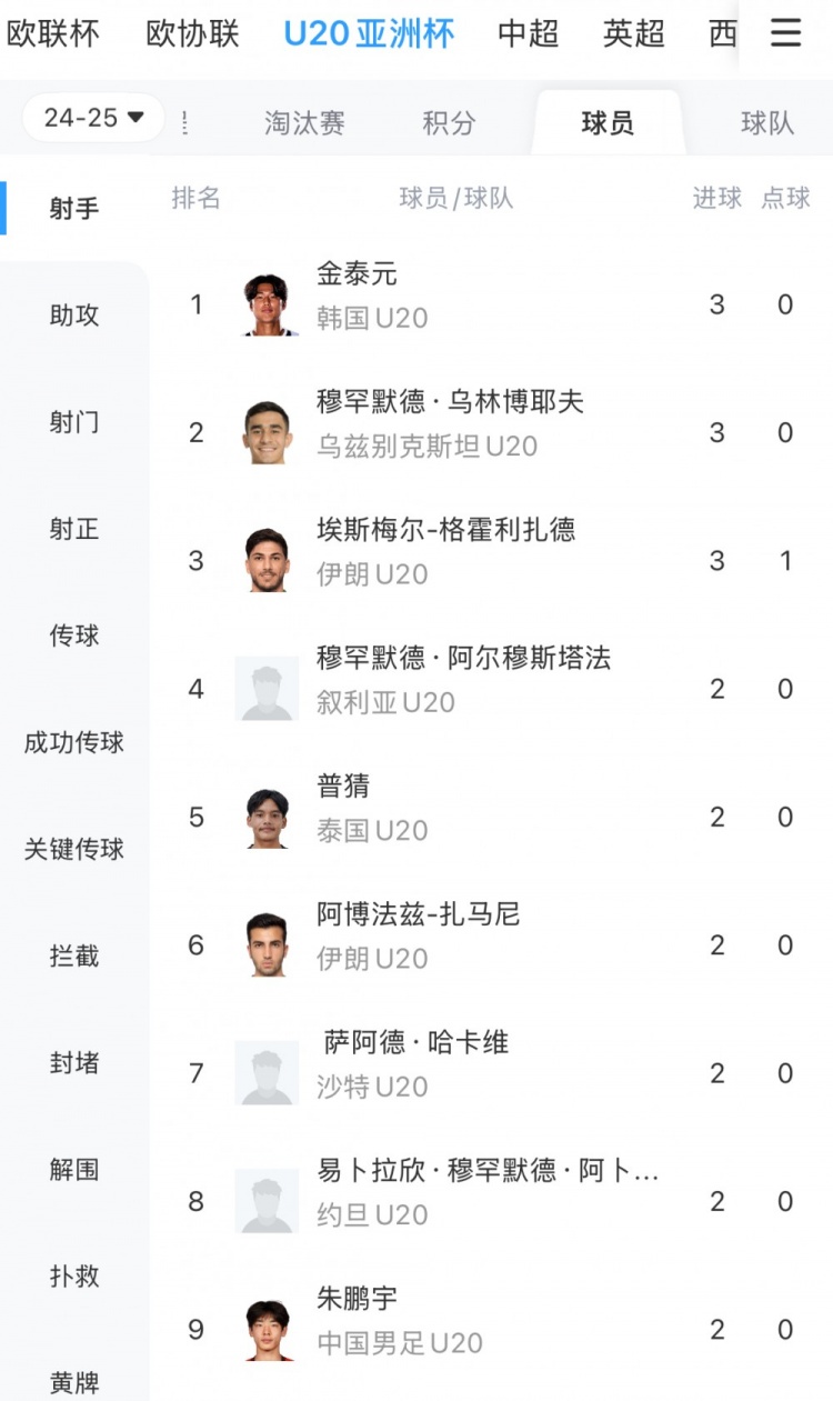 U20亚洲杯射手榜最新统计如下↓↓↓