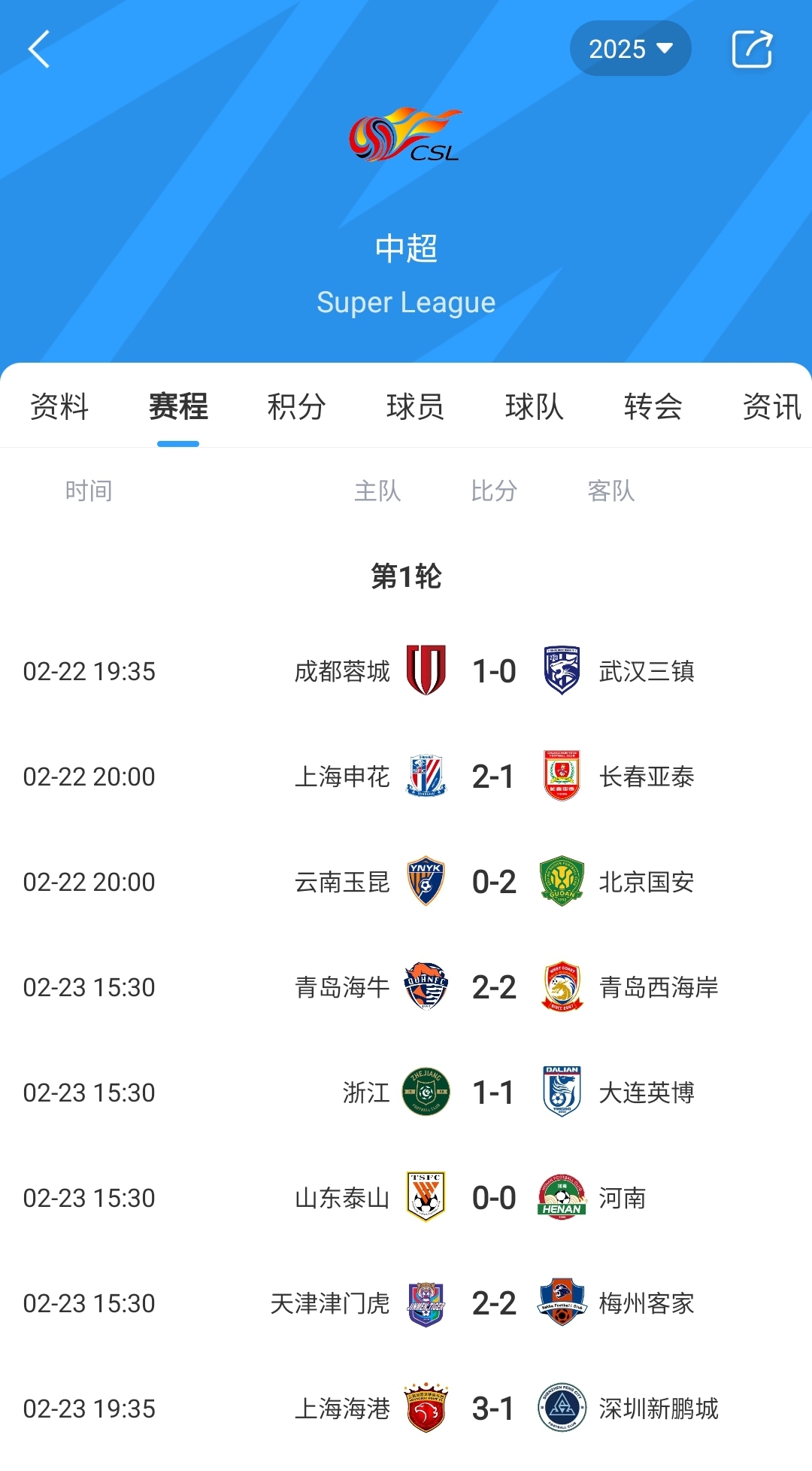 标签: 中超 武汉三镇 山东泰山 浙江 上海海港 成都蓉城 河南 北京国安 天津津门虎 梅州客家 上海申花 长春亚泰 青岛海牛 深圳新鹏城 青岛西海岸 大连英博 云南玉昆 足球 中国足球