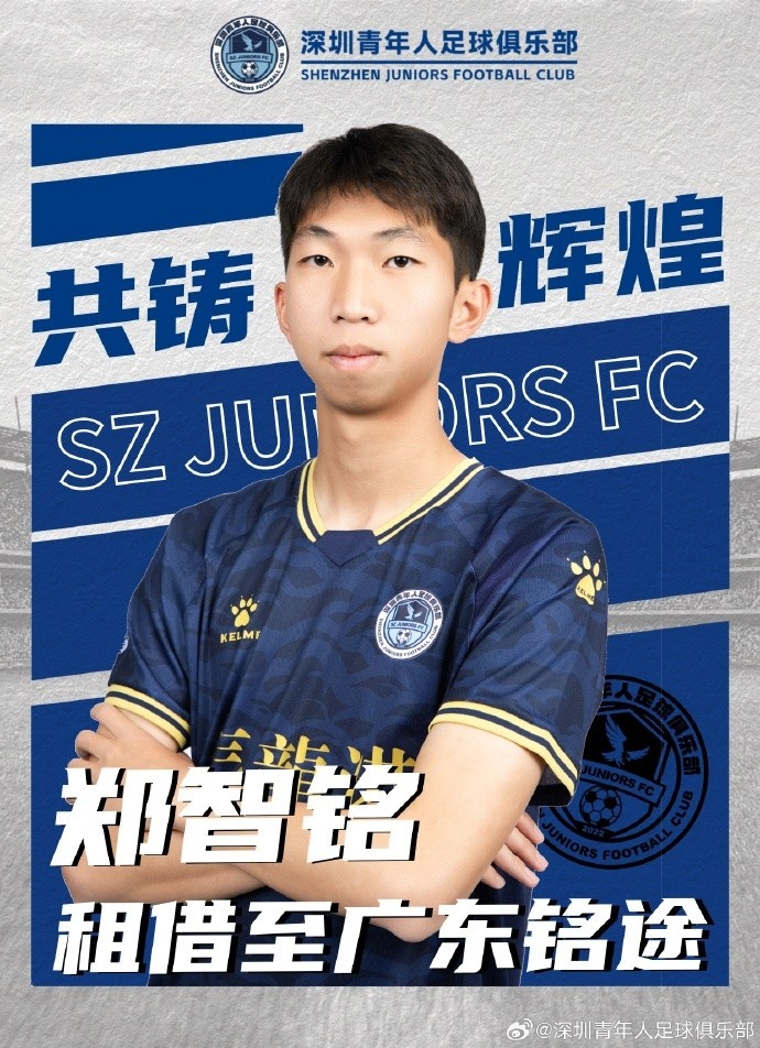 官方:中甲深圳青年人球员郑智铭、温永骏,租借加盟广东铭途
