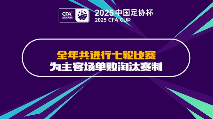 2025中国足协杯正赛将于3月14日开赛,12月5日结束,一共进行7轮,为主客场单败淘汰赛制,共64支参赛队,进行63场比赛,第1轮至第3轮若在90分钟内战平将直接进行点球大战,决赛将于12月5日在苏州奥体中心进行。