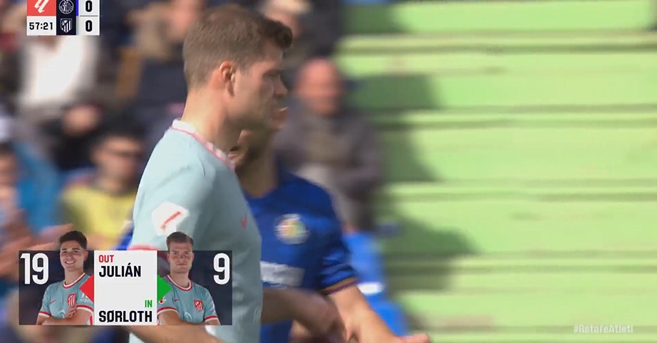 03月09日讯 西甲第27轮,赫塔费vs马竞,比赛第58分钟,阿尔瓦雷斯被换下,索尔洛特上场。此前阿尔瓦雷斯连续4场都有进球,本场他未能延续这一进球纪录。