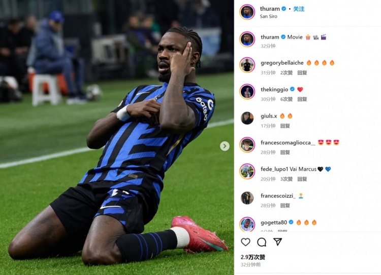 进球功臣小图拉姆则晒出自己的滑跪庆祝照,并配文:“电影时刻!”