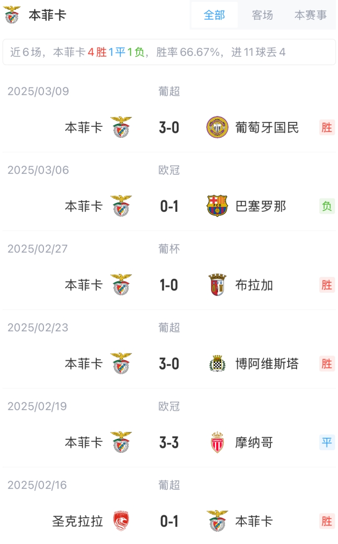 本菲卡替补:24-索亚雷斯、71-莱昂纳多-桑托斯、81-阿德里安-巴杰拉米、64-贡萨洛-奥利维拉、25-普雷斯蒂亚尼、60-努诺-菲利克斯、84-若昂-雷戈、85-桑谢斯、18-巴列罗、7-阿姆杜尼、9-卡布拉尔、19-贝洛蒂