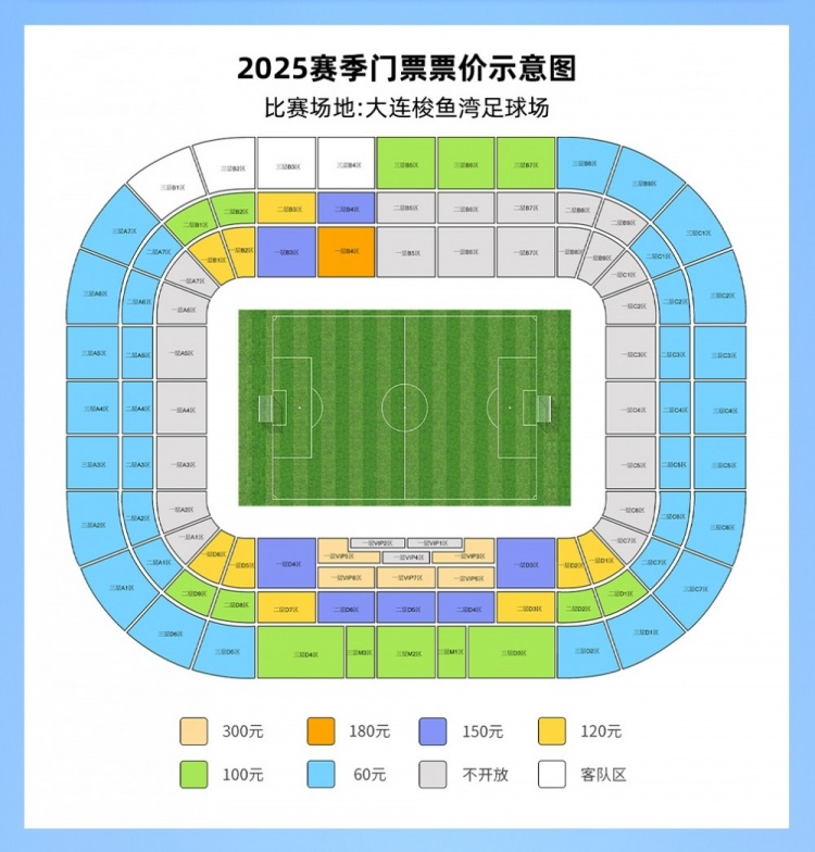 大连英博新赛季主场首战下周一开票,票价60-300元分为6档