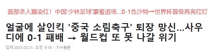 韩媒大面积群嘲国足:杀人飞腿、少林足球、蒙羞退场、世界杯梦碎