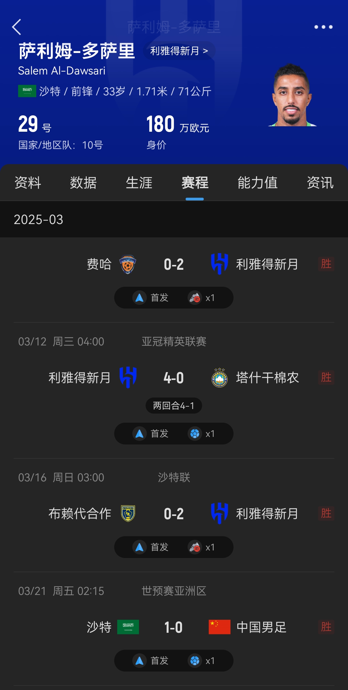 本场打入唯一进球的沙特队长多萨里几天前在沙特联首发打满全场,送出助攻