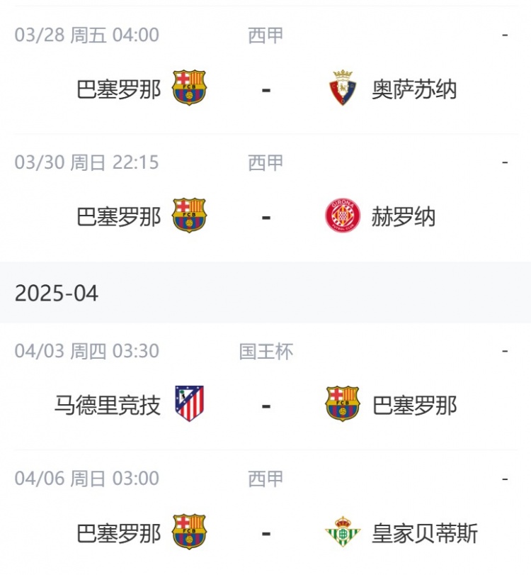 巴萨未来赛程↓