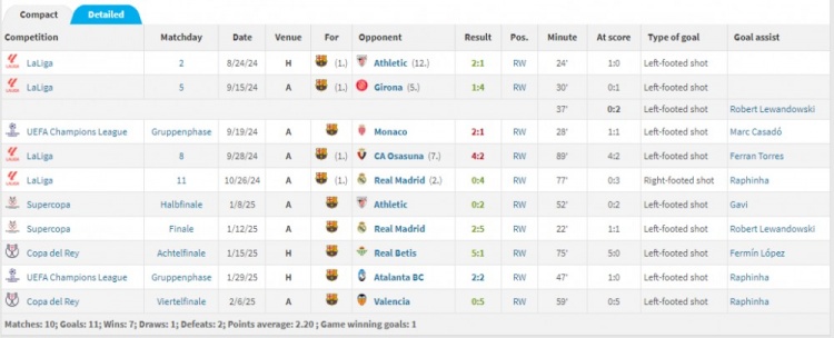 亚马尔这段时间在其他赛场倒是取得了不少进球,超级杯他分别在半决赛和决赛破门、欧冠也打进了一球、国王杯也有两场比赛破门。