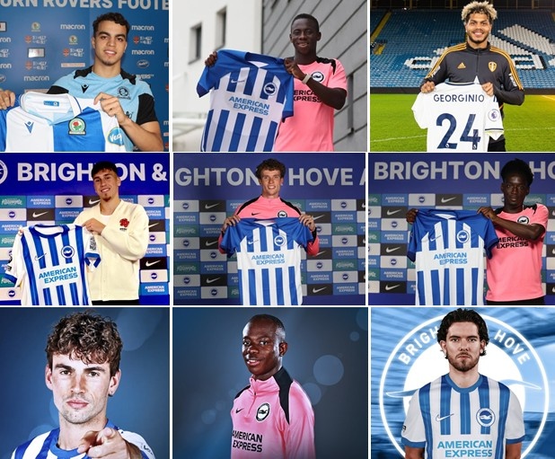 在124年的队史中,布莱顿长期徘徊于低级别联赛,唯一的顶级联赛经历(1979-1983)没有任何亮点可言。2016/17赛季升入英超之后,海鸥军团在保级圈周围挣扎了四个赛季,期间没有高价出售球员的经历,卖出的身价唯一超过千万欧元的球员就是科诺凯特(1170万欧元)。以2021夏窗出售本-怀特(5850万欧元)为标志,布莱顿成为顶级豪门供货商,麦卡利斯特、凯塞多、比苏马、库库雷利亚、罗伯托-桑切斯、昂达夫和特罗萨德等人共计为东家创收近4亿欧元。