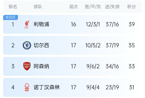 在第17轮结束后,切尔西当时还排名第二,落后榜首的利物浦4分。但此后的8轮,切尔西2胜2平4负仅拿8分,排名跌至第四,落后榜首的利物浦14分。