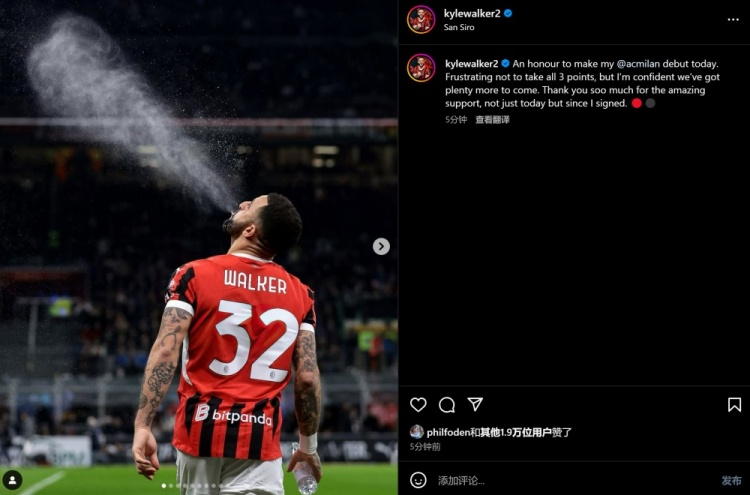 沃克:很荣幸迎来首秀遗憾没能全取三分,感谢加盟以来对我的支持 2月3日讯 本轮意甲米兰德比中,米兰1-1遭国米绝平。赛后,迎来米兰生涯首秀的沃克更新社媒,向球迷表示感谢。沃克写道:非常荣幸能在今天迎来我的米兰生涯首秀。很遗憾我们没能全取三分,但我相信我们未来还会 2025/02/03