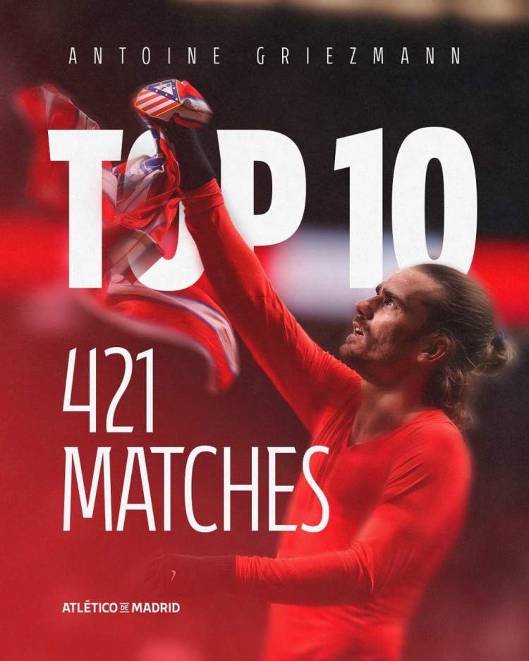 421场!格列兹曼跻身马竞队史出场榜前十,科克668场居首 2月2日讯 马竞在本轮西甲2-0力克马洛卡,老将格列兹曼替补建功。马竞官方统计显示格列兹曼已经跻身队史出场榜前十。马竞队史出场榜:668场,科克553场,阿德拉多483场,托马斯474场,奥布拉克46 2025/02/02