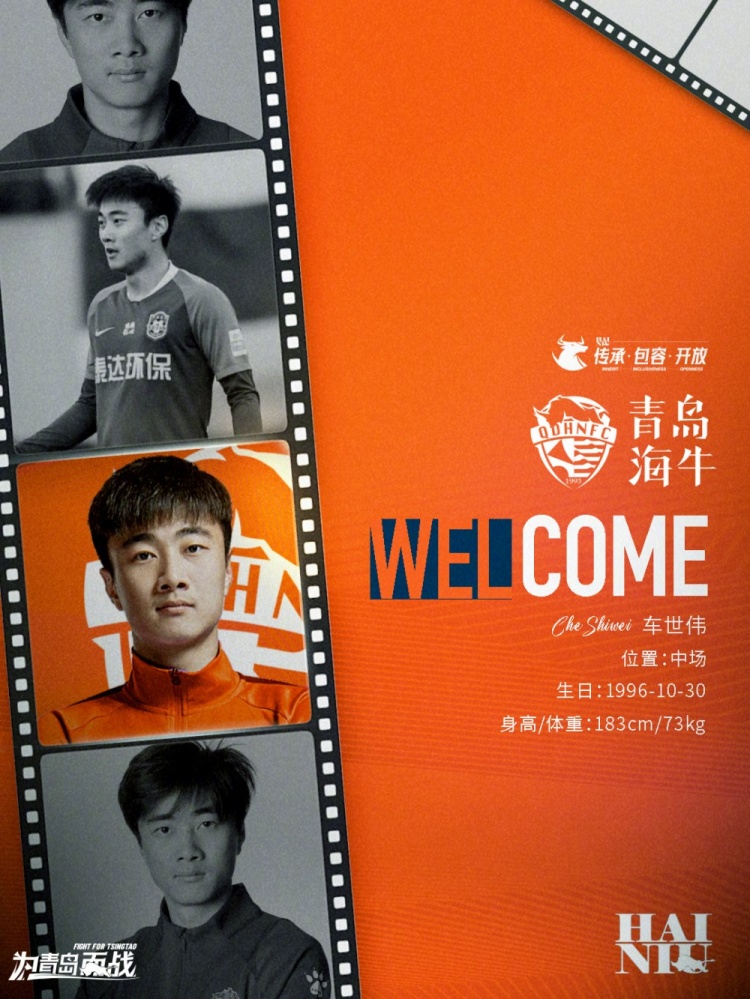 官宣 | 欢迎车世伟 经友好协商并达成一致,自即日起车世伟自由身加盟青岛海牛足球俱乐部。车世伟与俱乐部签署两年合同,欢迎他的到来。车世伟,1996年10月30日出生于辽宁大连,司职中场,身高183cm,体重76kg。出道于 2025/02/01